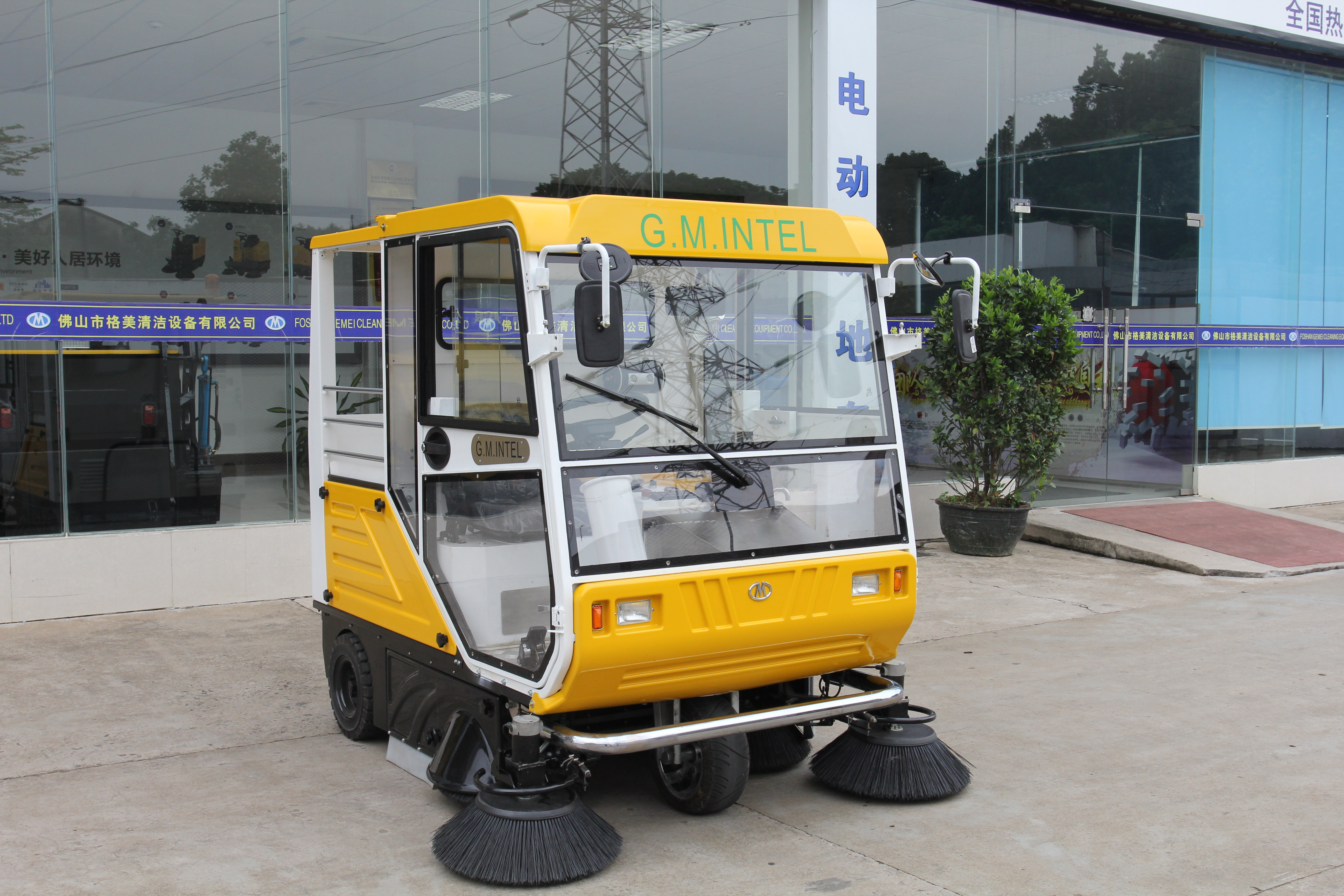 格美電動掃地車S10,清掃寬度1.9米,針對寒冷霧霾天氣和風沙環境而設計,能清掃包括樹葉、礦泉水瓶、易拉罐、 沙石等一系列垃圾,駕駛室配有風扇和推拉車頂,可讓操作員在一年四季大多數氣候條件下都能感到安全和舒適。